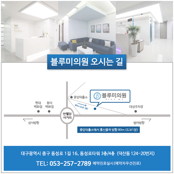 안녕하세요 대구동성로피부과 블루미의원입니다.